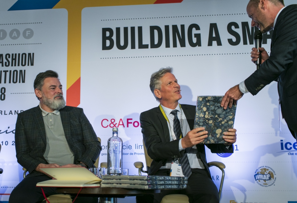 Brigitte Stepputtis (Vivienne Westwood), Douwe Jan Joustra (C&A Foundation), Thomas Gries (Aachen University)